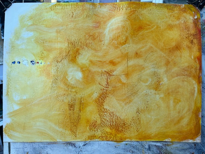 Drawing on Cixin Liu’s reference to van Gogh, string theory, and the reduction of the solar system to two dimensions (Death’s End: Three Body Problem series audio book 2018), this is (hopefully) going to be an exploration of Van Gogh’s approach to a cosmology he could never have seen and, for the latter part, doesn’t actually exist. It’s also in oils which I found in the bottom drawer of a stack. Bit of a first for me.