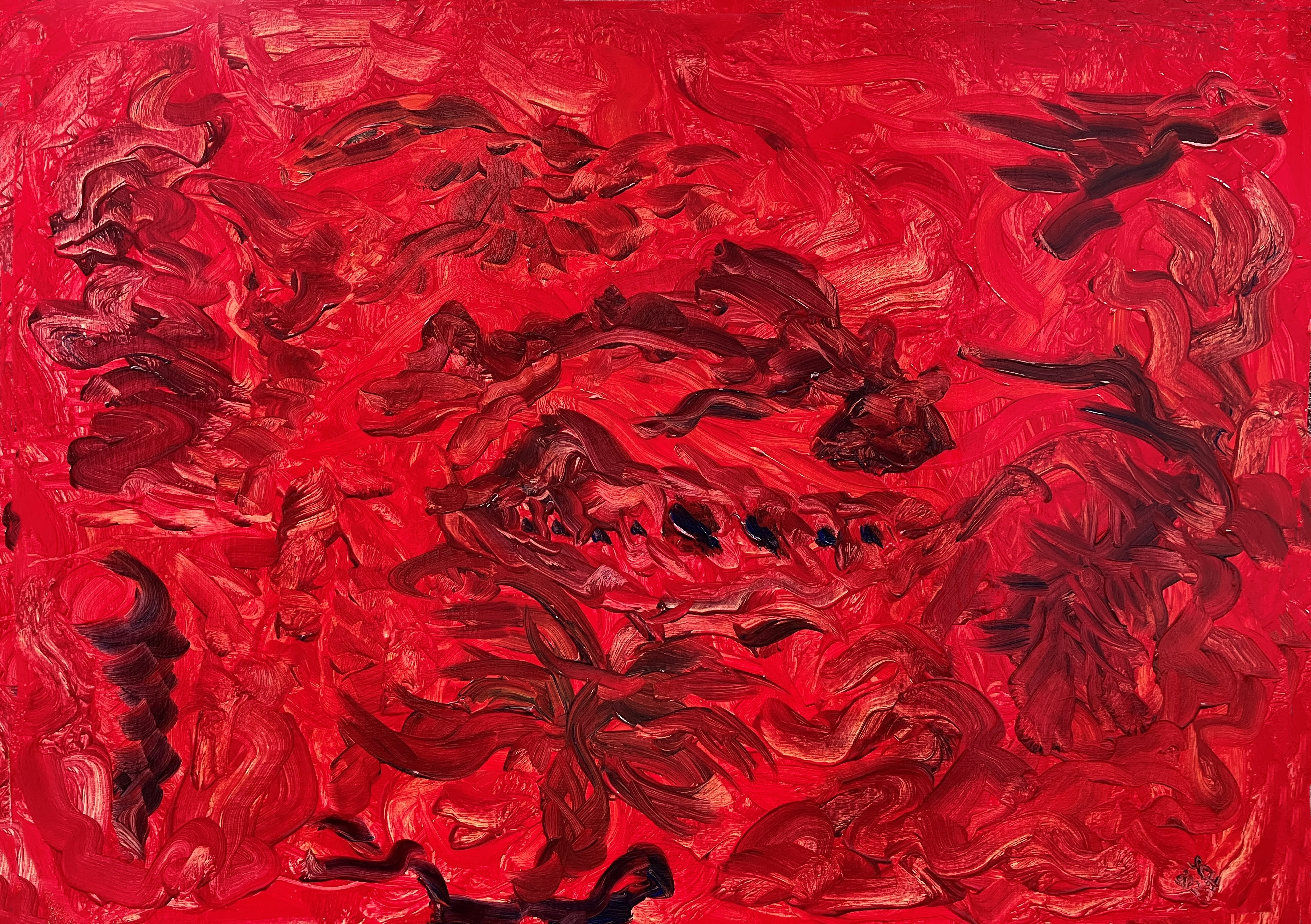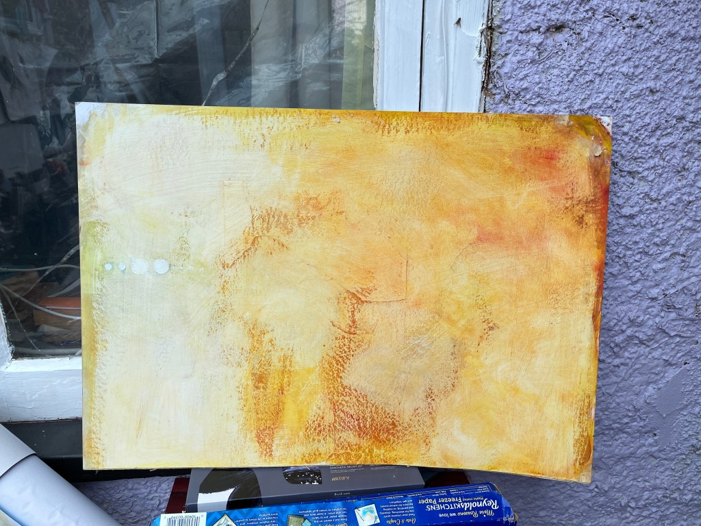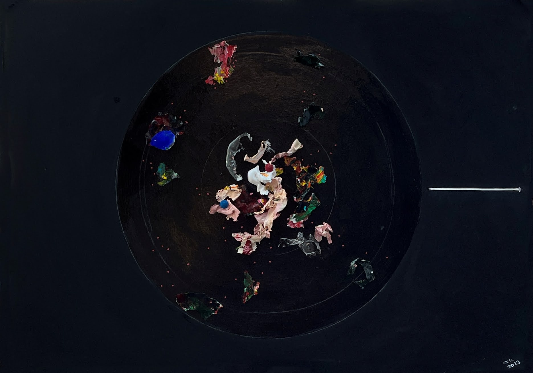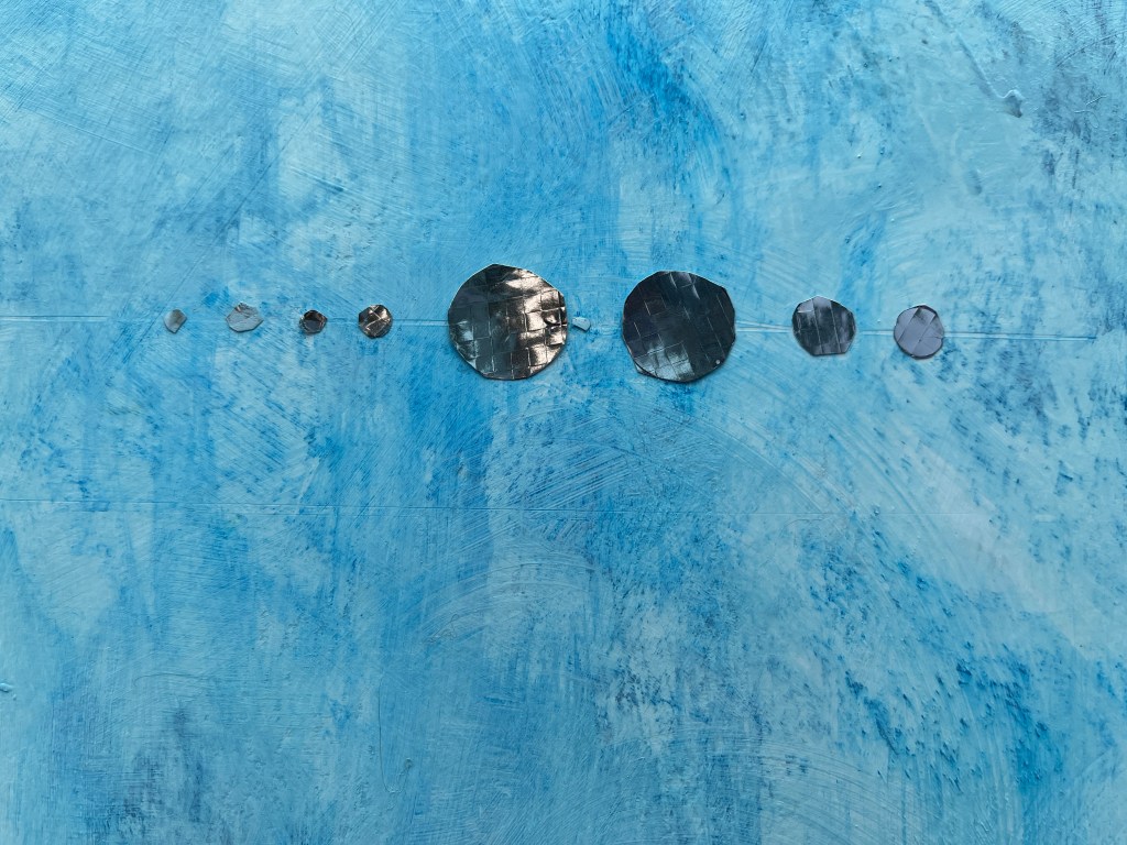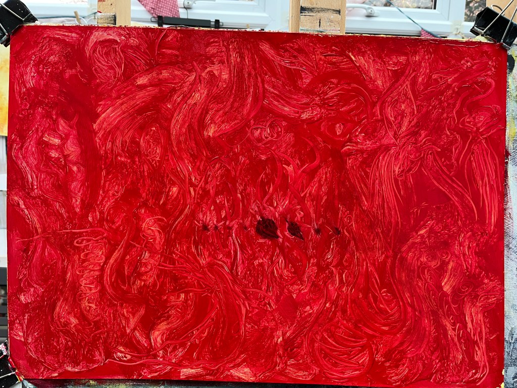 Art, Digital art, Painting, Physical/digital hybrid art Solar system series Young gun sun Oils, soft pastels, and gloss varnish on A2 card. Red dragon Oils and gloss varnish on A2 card. White Nova Oils and gloss varnish with silver foil collage on A2 card. Red dwarf Oils on A2 card with gloss varnish painted into matte areas of the image to echo invisible dark energy. Billions of suns Oils on A2 card with gloss to the central circle and acrylic paint peeled from a palette to imply galaxies. Composite video – Sun’s lament Share this: Click to share on X (Opens in new window) X Click to share on Facebook (Opens in new window) Facebook Like Loading... Related