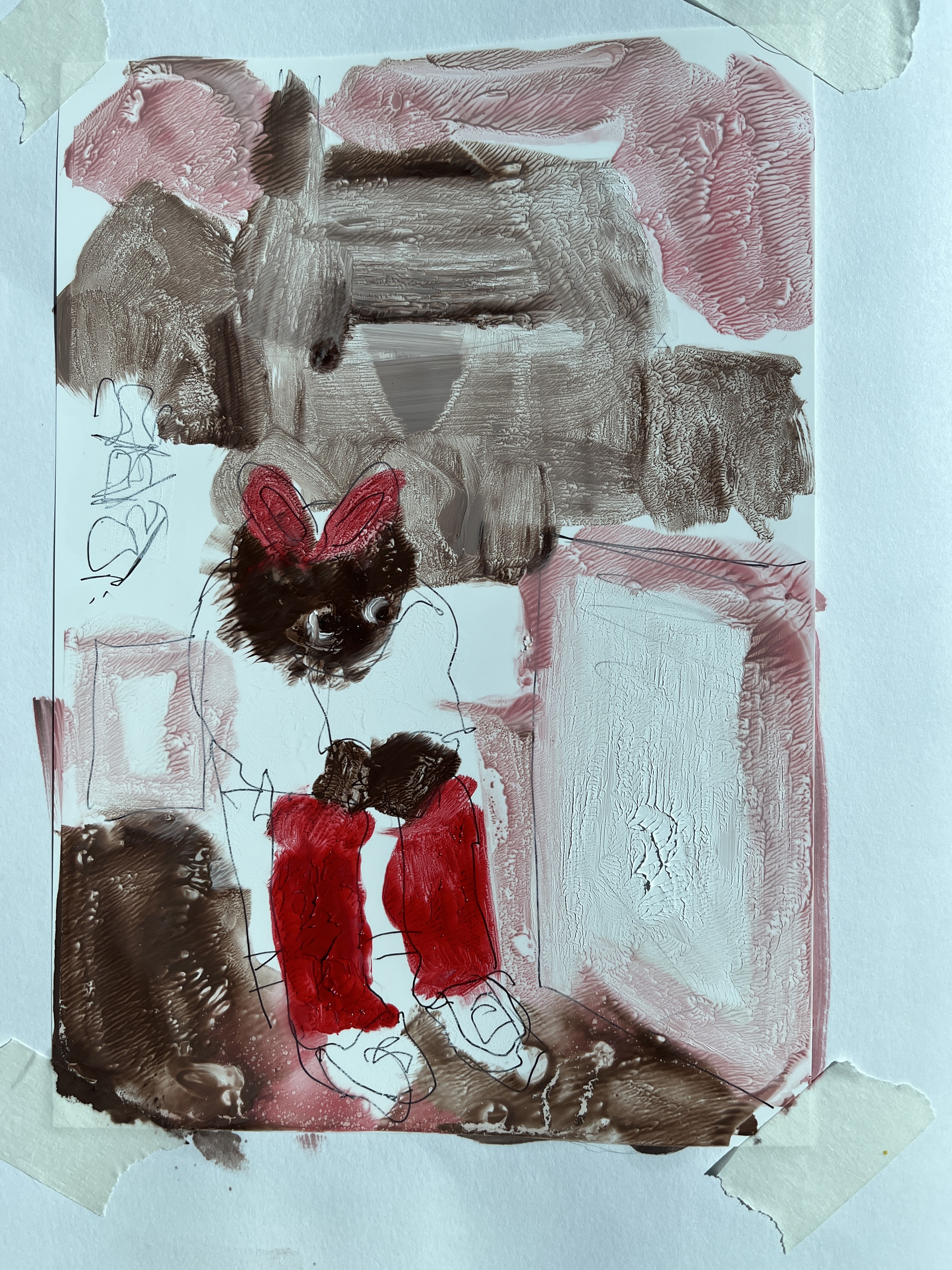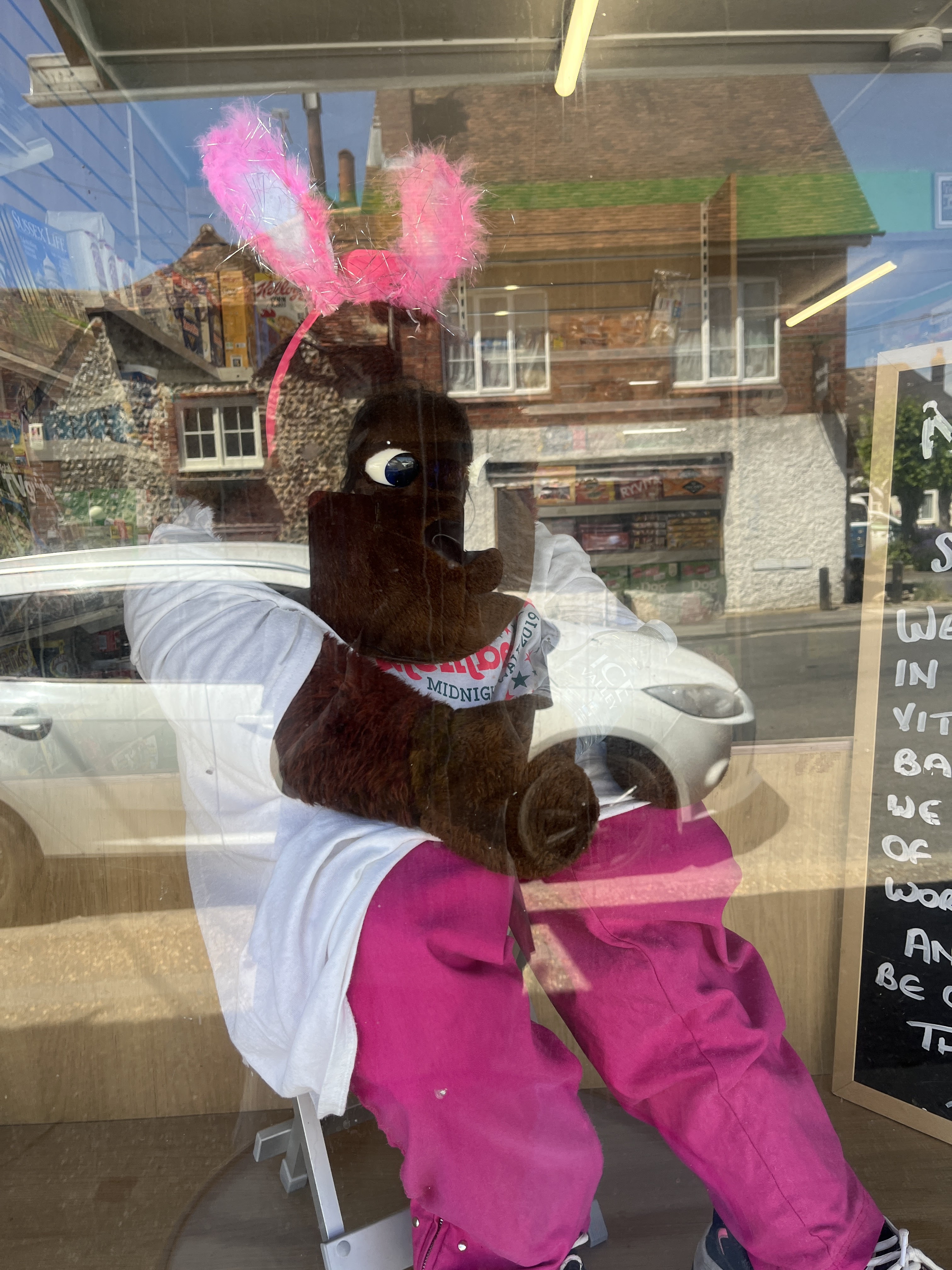 Thinking of my degree show plan, I used a reference from a local shop. Boris the Gorilla features regularly in the window of the newsagents and this time was in pink to commemorate someone who used to work there.