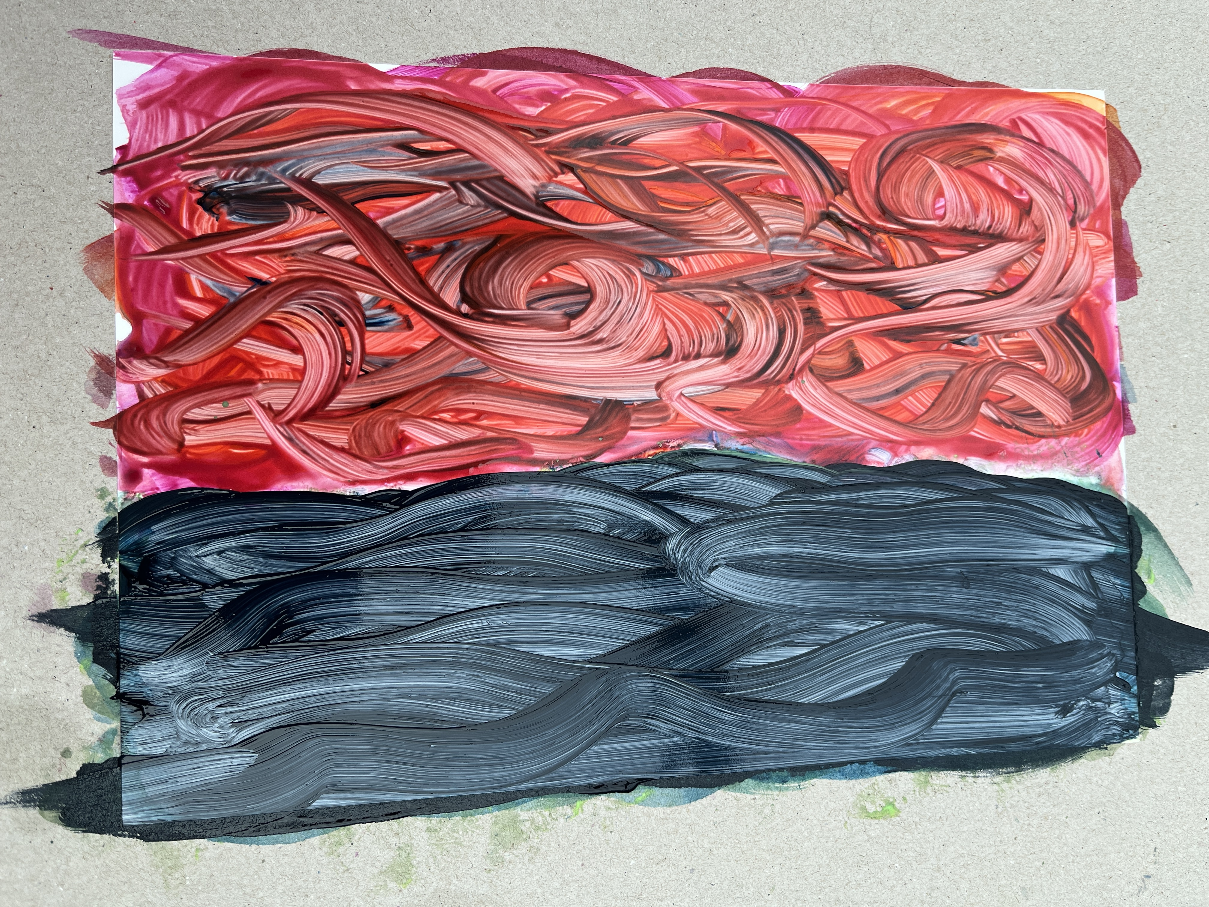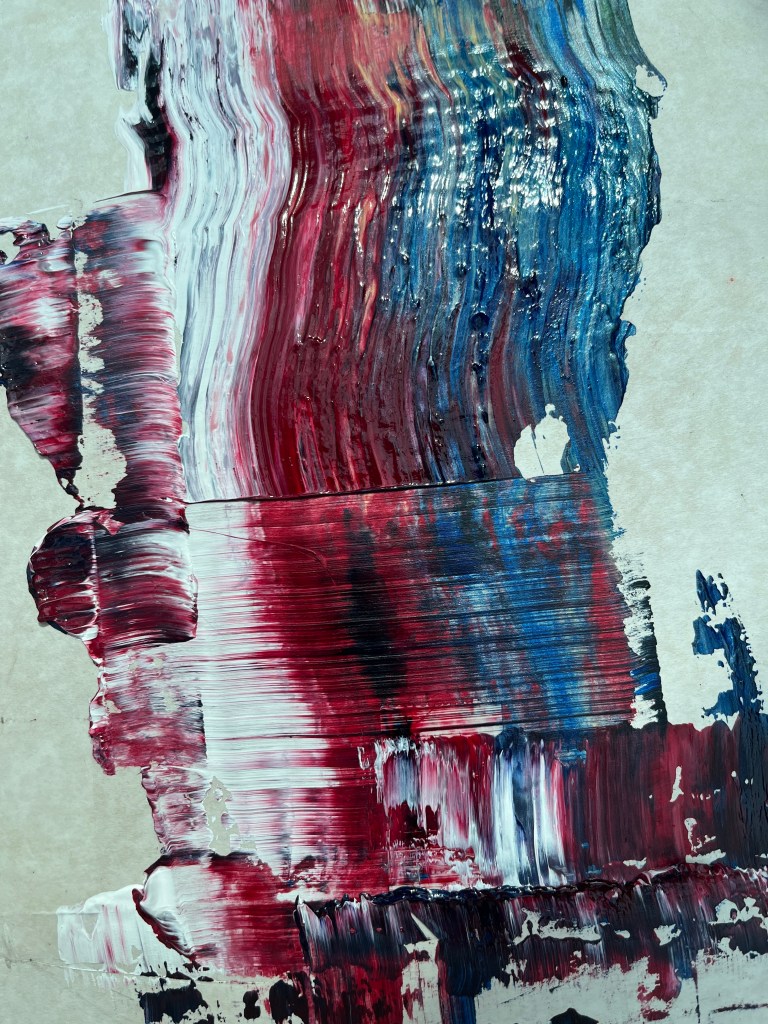 This didn’t go quite as planned but the effect is interesting and at this stage, it isn’t dry yet so it will change. I’ve called it Weather Serpents which again draws on the original raison d’etre but in fact it means I should stop for now because it’s lost its fluidity as I’ve herded the marks around leaving marks of my own instead.