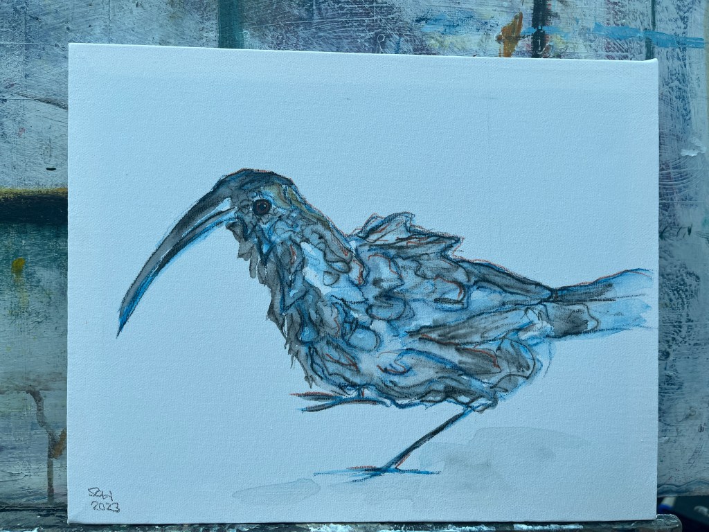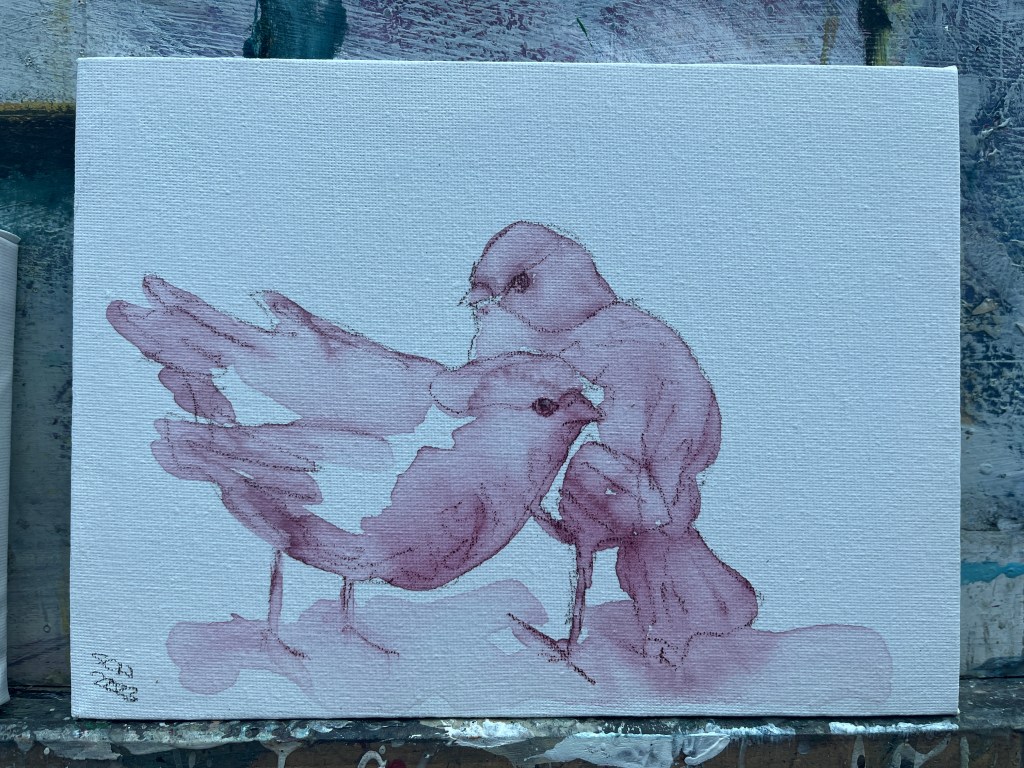 Sometimes you just need to reconnect with the basics so here we have Birds. These are in effect still life drawings as all of them are metal ornaments/sculptures so I’m not trying to target moving objects. Critically though, they’re not photos which means I’m translating an actual 3D image out in the real world into a 2D one on a flat canvas. I’ve used watercolour pencil on primed canvas and it won’t escape anyone’s attention that I’ve managed to increase the complexity of each image sequentially! The small ones are definitely sparrows but the identity of the larger, long-beaked bird is anyone’s guess.