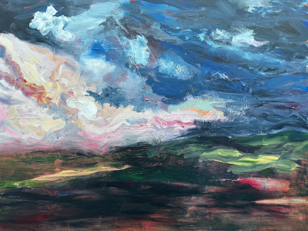 I just heard put into words the thought that always comes to mind when I’m painting which is that the aim is not to copy the photo but to interpret it. This is my first series of interpretations of the layered photos I have begun to paint.