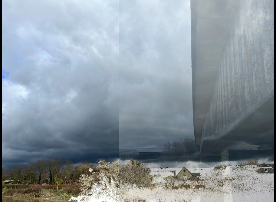 Below is the painting with the bridge overlay. I have no idea where the static moons came from although I was looking for the dispersion effect at the time!