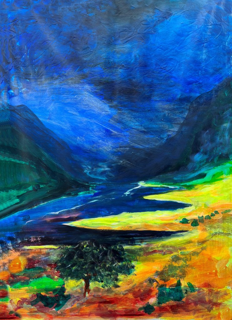 A big welcome to Second Life exhibition viewers; thank you for visiting! Here are the landscape paintings you’ll have seen at the Xaraz gallery. The AR (augmented reality) is a little frisky in SL and so I have posted them here where there’s no need for an app to view them.