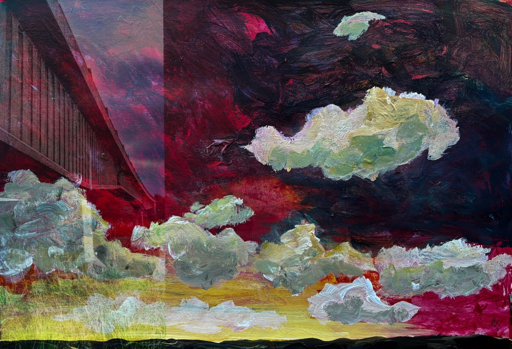 Bad Sun Rising is based on this image which is a still from an animation in MotionLeap of one of my photographs. I used sky modifications in the animation and added swooping birds.