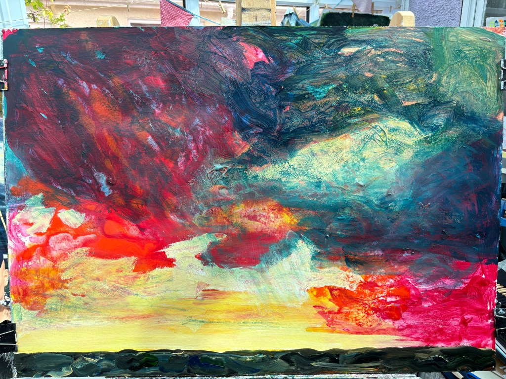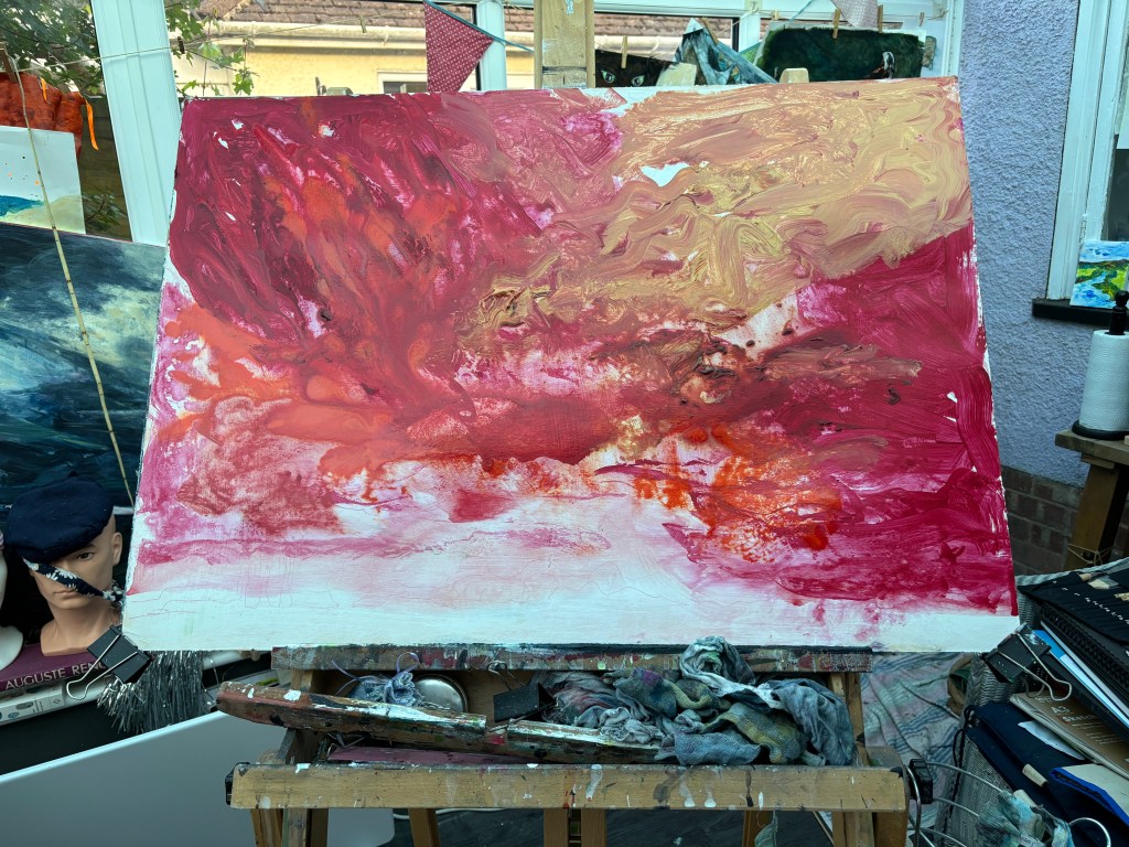 Post hoc comment, June 17th: Looking back over my work, I’ve settled on this painting to take to the group tutorial on July 10th along with the photographic overlay, the prose label, and the video.