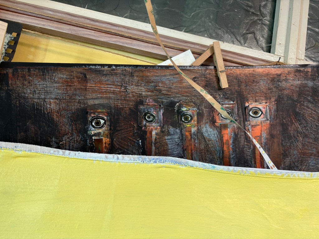 I seem to have a thing about eyeballs. I found some more peering out over a painting –