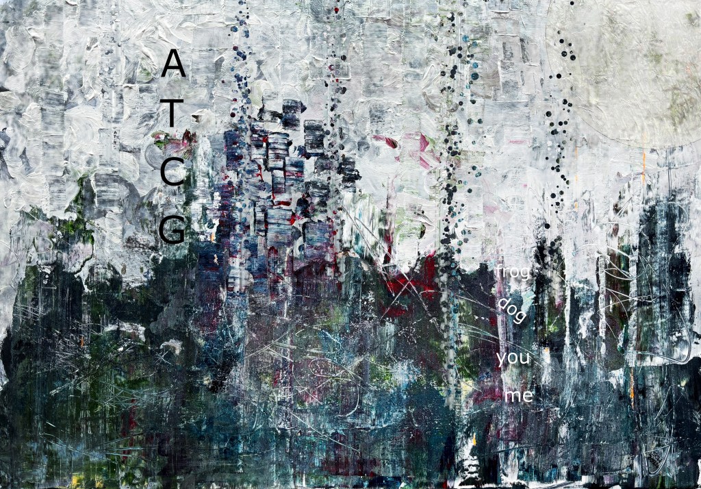 The text is applied in PhotoDirector, as is some of the animation. The capitals on the left are the initials of the four main nucleotides; adenine, cytosine, guanine, and thymine, that make up DNA. The text on the right is a very small list of organisms containing that DNA. In the animation, all of this is being stretched upwards and pulled apart. This image, as well as the original, can be activated by the Artivive app.