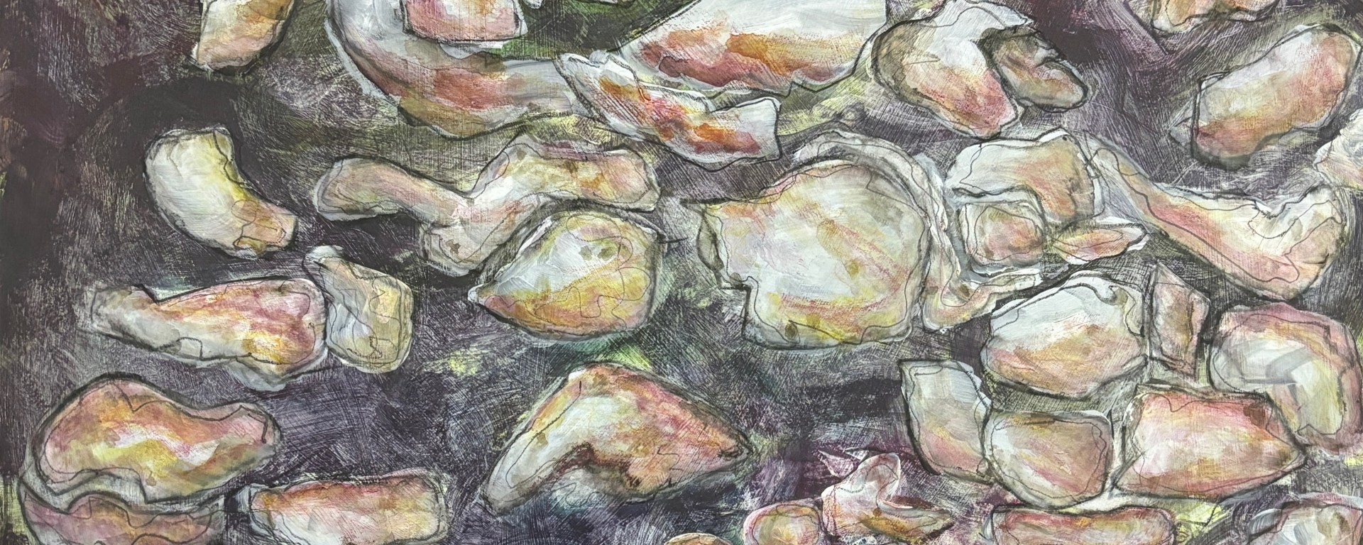 The painting remains prone while its watercolour pencil pink aurora stabilises. Then we’ll see if it’s staying.