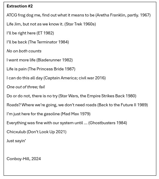 I expect to build on this in the next and final unit with a view to presenting a unique body of work, possibly shown digitally rather than in a gallery, which I can see developing beyond the trap of the one-trick-pony. I understand this process but even more I understand how my own cognitive processes underpin it. I am a stepwise creative; I reach a plateau and everything stops, but if I leave it alone it will have transmogrified into a next step which will likely appear to have come from nowhere.