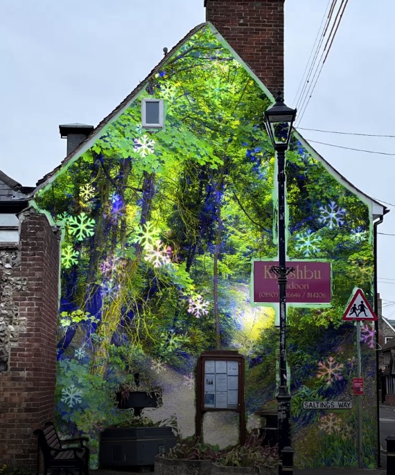 https://conboyhillarts.com/2024/12/02/pepperscoombe-christmas-videos/ The polar opposite of the above is the Christmas displays I am putting on houses in our lane. I invited people to send me photos of their house front so that I could ‘decorate’ them and put the finished piece on YouTube where they could share it with anyone they wish. I said I wanted to have a trial run with just a few houses this year with a view to decorating as many as possible next year using children’s artwork wherever possible. The first is the local takeway which has something on it most of the year. I’ve explained it to the owners, shown them what happens when you point the Artivive app at their wall, and assured them that nothing is damaged in the process. I’m not sure how much of that has made sense to them but they approved and every so often I remind them. The following seven are all houses in the lane showing off-the-peg material, but the sixth is a drawing by someone who may be a child but may also be a person with cognitive impairments. The work was mediated by a person who seems to live with them and tells me they are absolutely delighted with the result to the extent they were going to do more drawings for me!