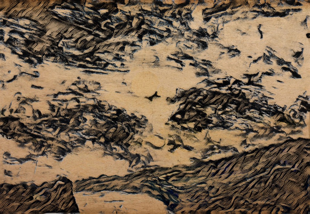 There’s often a tipping point for me when I think yes, that’s done while also knowing it isn’t because of a disquieting mental twitch that’s not in agreement. The last image above is that stage and it’s the one that also challenges the just enough/too much tipping point. [The blurring comes with the text.]