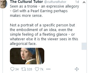 Tronie. I came across this word for the first time this morning (30.11.2022) in reference to ‘Girl with a Pearl Earring’ (Vermeer, 1665) via @CulturalTutor on twitter. It sounds remarkably 21st century.